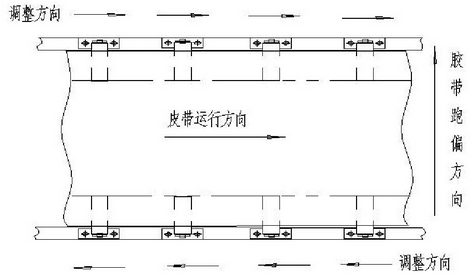 斜皮帶偏向哪一側(cè),將托輥支架的哪一側(cè)朝皮帶前進(jìn)的方向前移,或?qū)⑼休佒Ъ艿牧硗庖粋?cè)向后移。