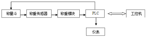 當需要配料時,控制系統(tǒng)下達配料指令,進行快速配料,物料進入稱量斗,傳感器將重量信號通過金屬的電阻應(yīng)變效應(yīng)并轉(zhuǎn)換為電壓信號,通過電纜傳輸給稱重模塊,再由稱重模塊將轉(zhuǎn)換后的數(shù)字信號送至PLC;考慮到稱量的準確性,系統(tǒng)提供了一個配料提前量——精稱范圍,當配比與秤上重量之差達到精稱范圍時,PLC發(fā)出指令,放慢配料速度,進入精稱配料(粉料沒有精稱),當重量達到配比值時,停止配料,完成配料過程。