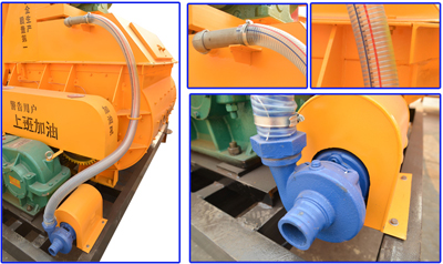 供水系統(tǒng)由電機(jī)、水泵、節(jié)流閥、清洗裝置、噴水管等組成。拌制混凝土所需的水是由水泵通過節(jié)流閥送至噴水管,節(jié)流閥可調(diào)節(jié)水的流量。 |