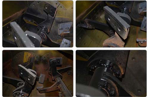 JS750攪拌系統(tǒng)由攪拌筒攪拌裝置、電動機、皮帶輪、減速器、開式齒輪、供油裝置組成。主電機通過皮帶連接在二級齒輪減速箱上,并通過兩對開式齒輪分別帶動兩根水平組置的攪拌軸相向等速回轉(zhuǎn)。 |